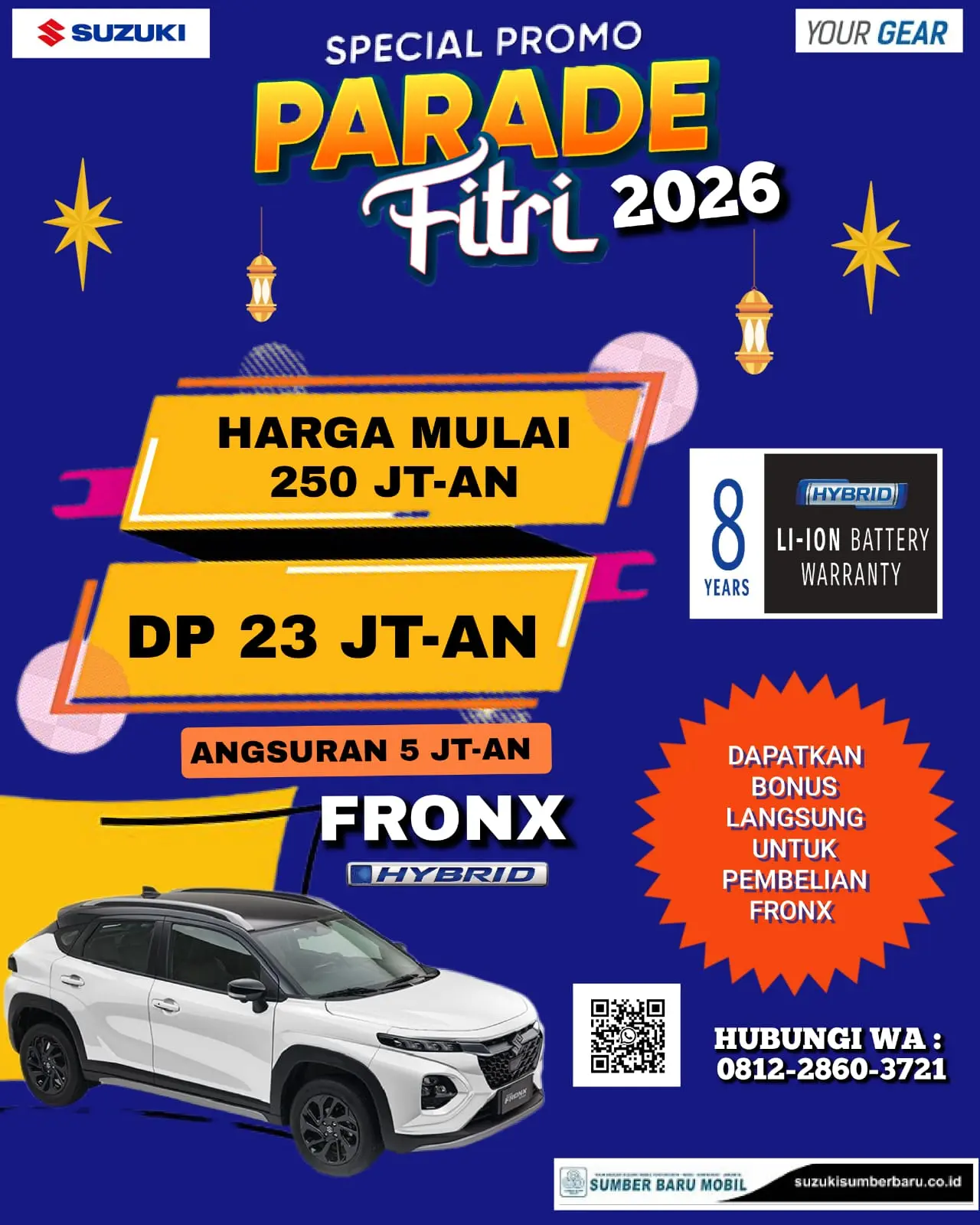 Jangan lewatkan kesempatan menjadi pemilik pertama Suzuki Fronx di lingkungan Anda. Unit terbatas dan promo ini hanya berlaku selama periode Parade Fitri 2026.