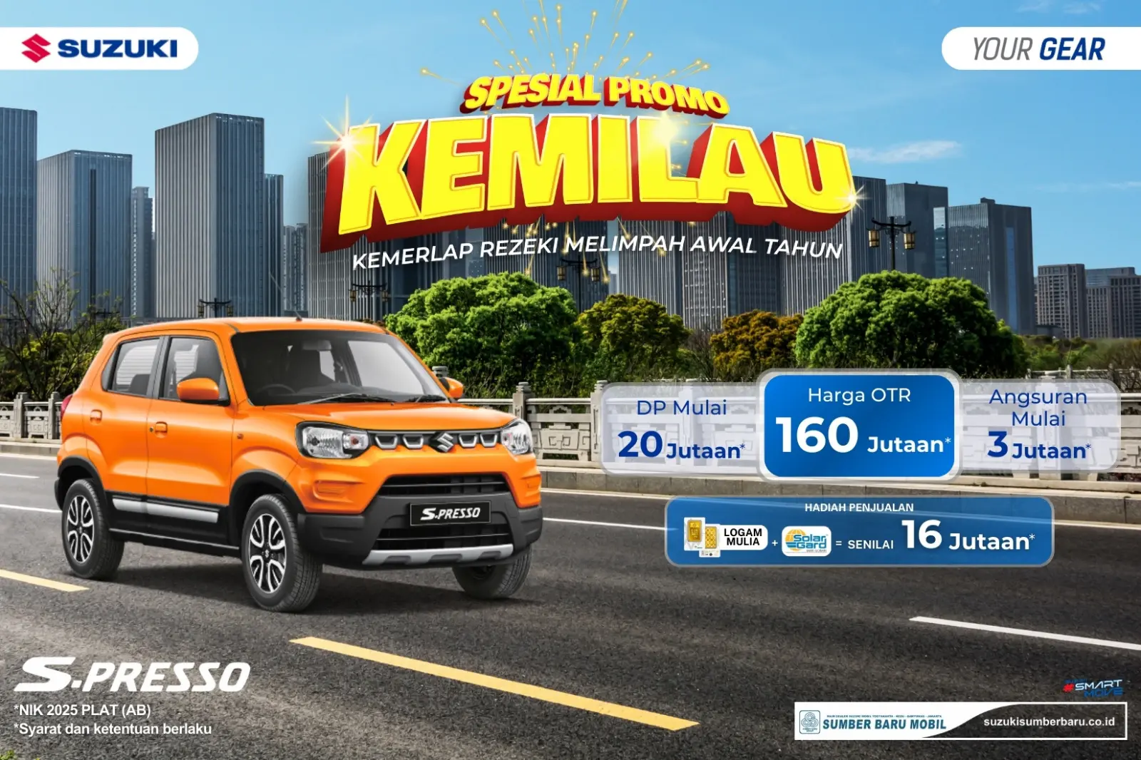 Bonus Langsung Mewah: Khusus untuk unit NIK 2025 Plat AB, setiap pembeli berhak mendapatkan Logam Mulia dan kaca film Solar Gard dengan total nilai mencapai 16 Juta Rupiah.