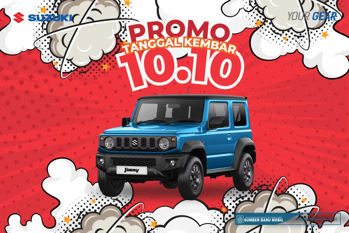 Jangan lewatkan kesempatan emas untuk memiliki SUV Ikonik 4x4 paling stylish ini! Kunjungi laman resmi kami untuk detail promo Jimny 10.10 di seluruh cabang: https://suzukisumberbaru.co.id/