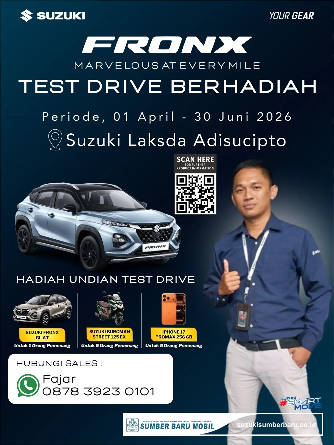 Test Drive Suzuki Fronx Berhadiah Mobil & iPhone 17! Hanya di Suzuki Laksda Adisucipto Yogyakarta