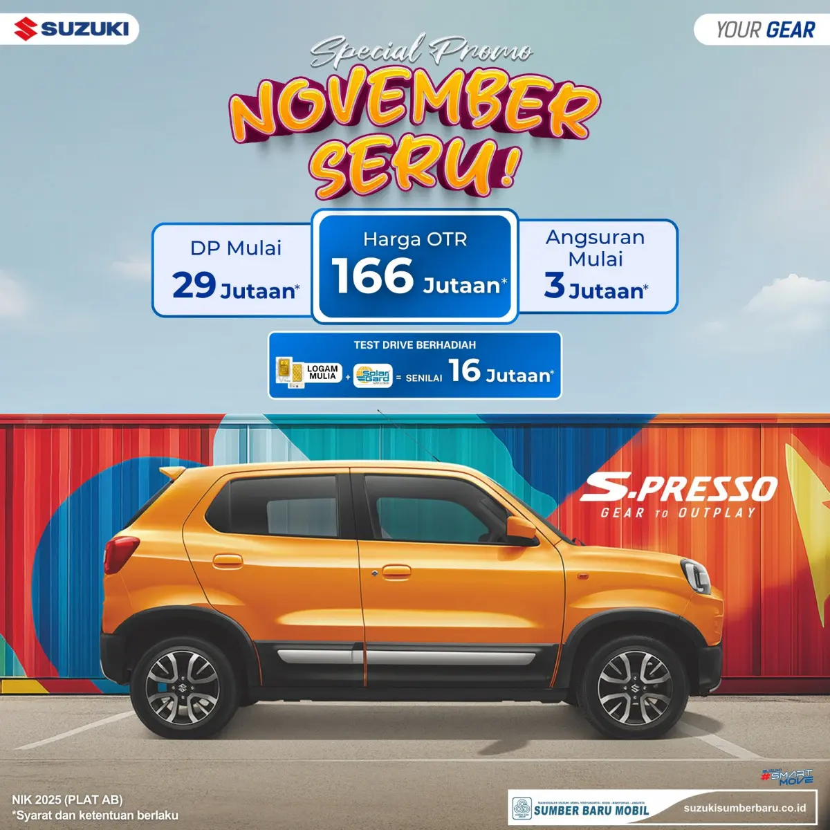 TINGGAL 12 HARI! Promo S-Presso DP 29 Juta + Hadiah 16 Juta di Suzuki Bantul!