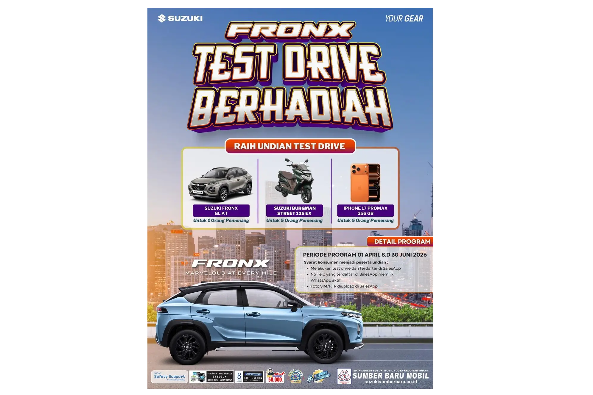 Daya tarik utama dari acara ini adalah program Fronx Test Drive Berhadiah. Manajemen Suzuki Sumber Baru Mobil ingin memanjakan warga Bantul dengan kesempatan memenangkan hadiah mewah hanya dengan mencoba unit kendaraan Suzuki.