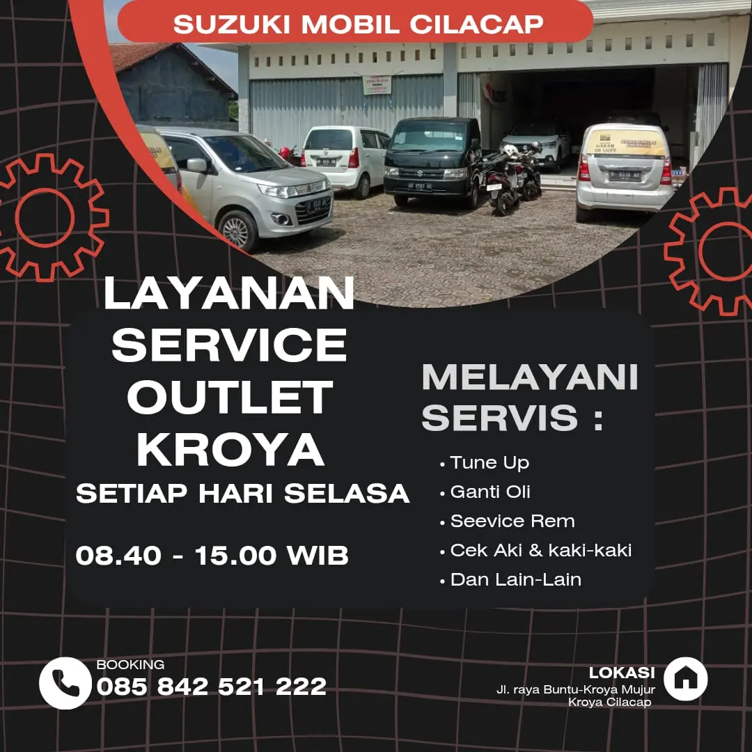 Warga Kroya dan sekitarnya! Kini service mobil Suzuki lebih dekat setiap hari Selasa. Cek jadwal, lokasi, dan promo menarik di sini. Booking sekarang!