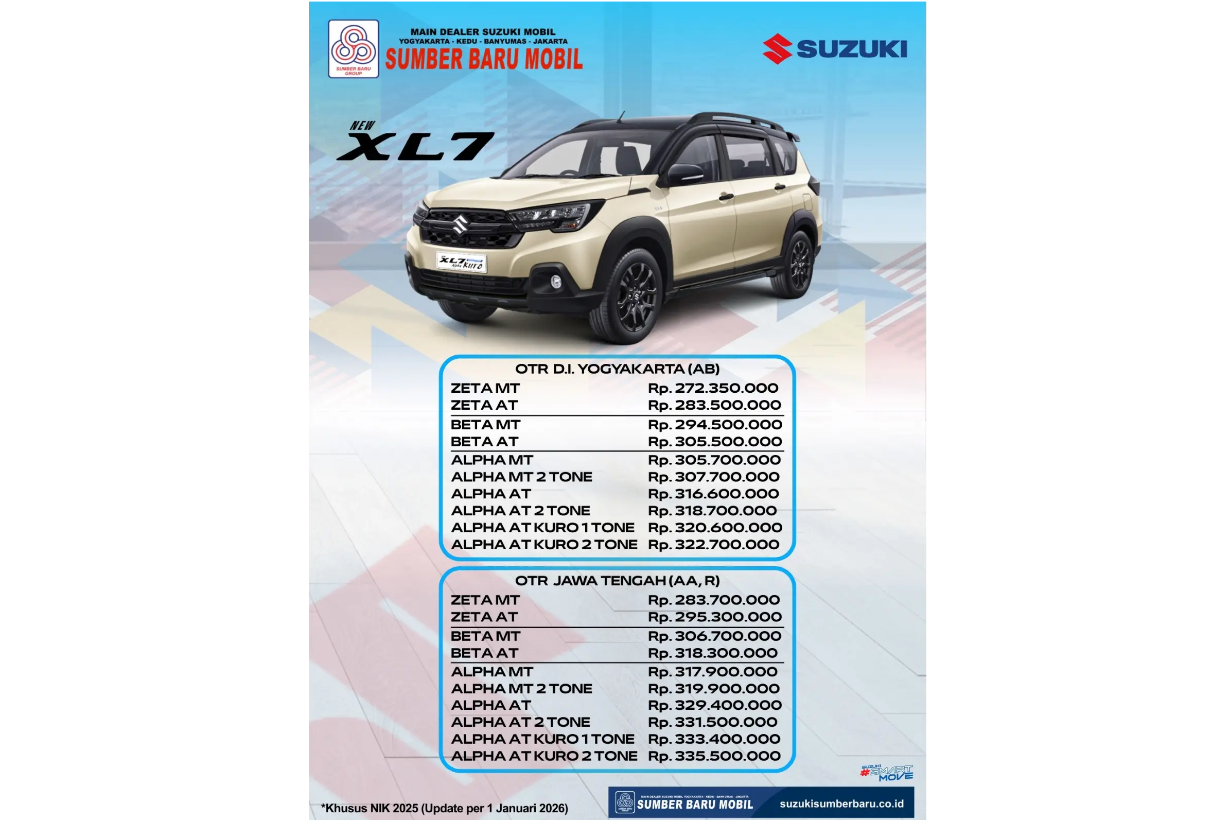 YOGYAKARTA – Memasuki awal tahun 2026 dengan intensitas hujan yang tinggi, keselamatan berkendara menjadi prioritas utama. Mengerti kebutuhan pelanggan, Suzuki Sumber Baru Mobil meluncurkan program "KEMILAU: Kemerlap Rezeki Melimpah Awal Tahun" yang menawarkan diskon servis dan penggantian suku cadang besar-besaran untuk memastikan visibilitas Anda tetap jernih di tengah badai.